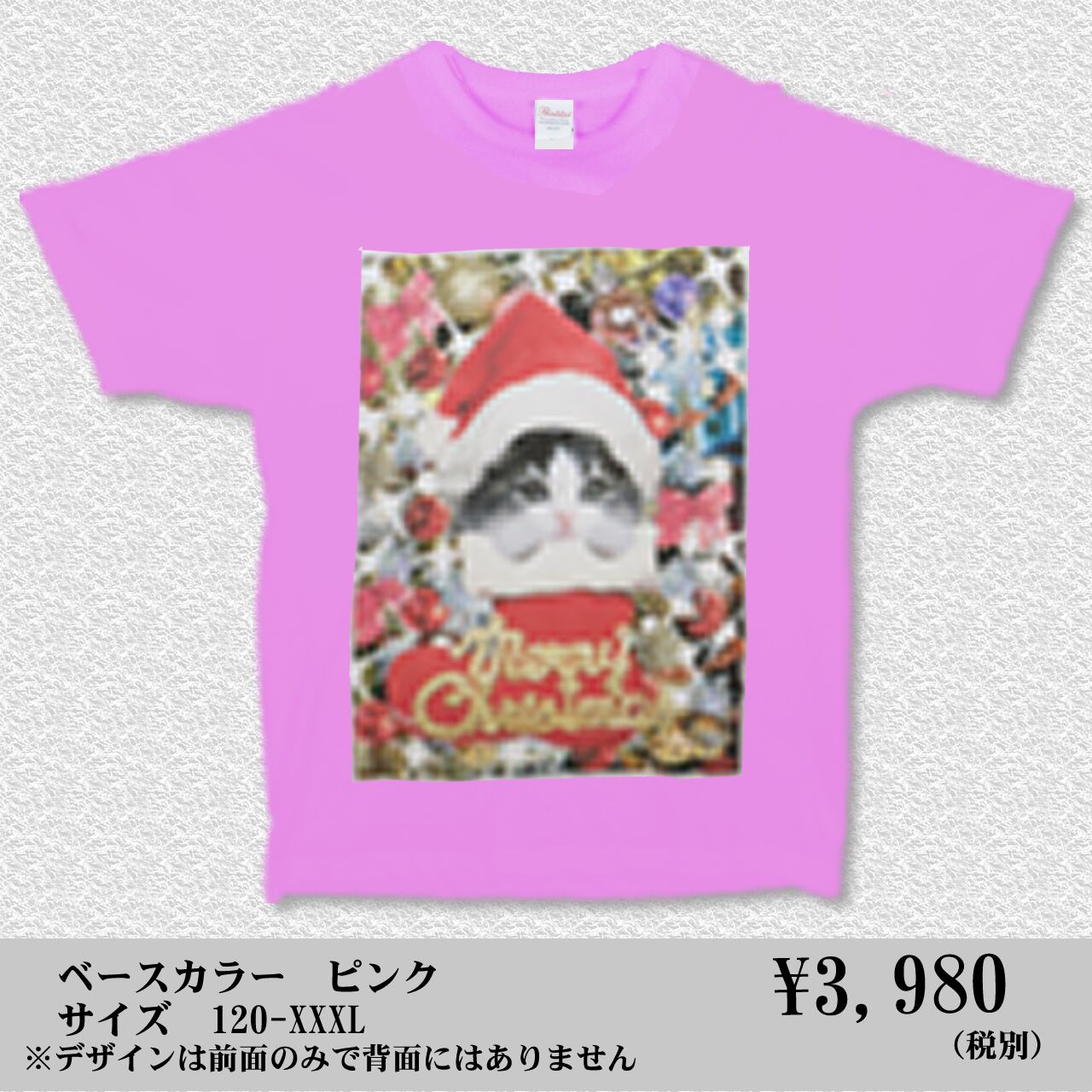 クリスマスにゃんこ カラーデザイン ピンクTシャツ