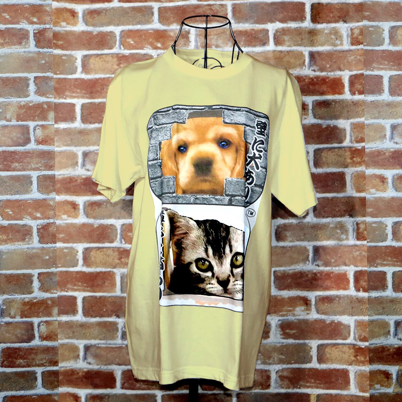 壁に犬あり障子に猫あり カラーデザイン 黄色Tシャツ