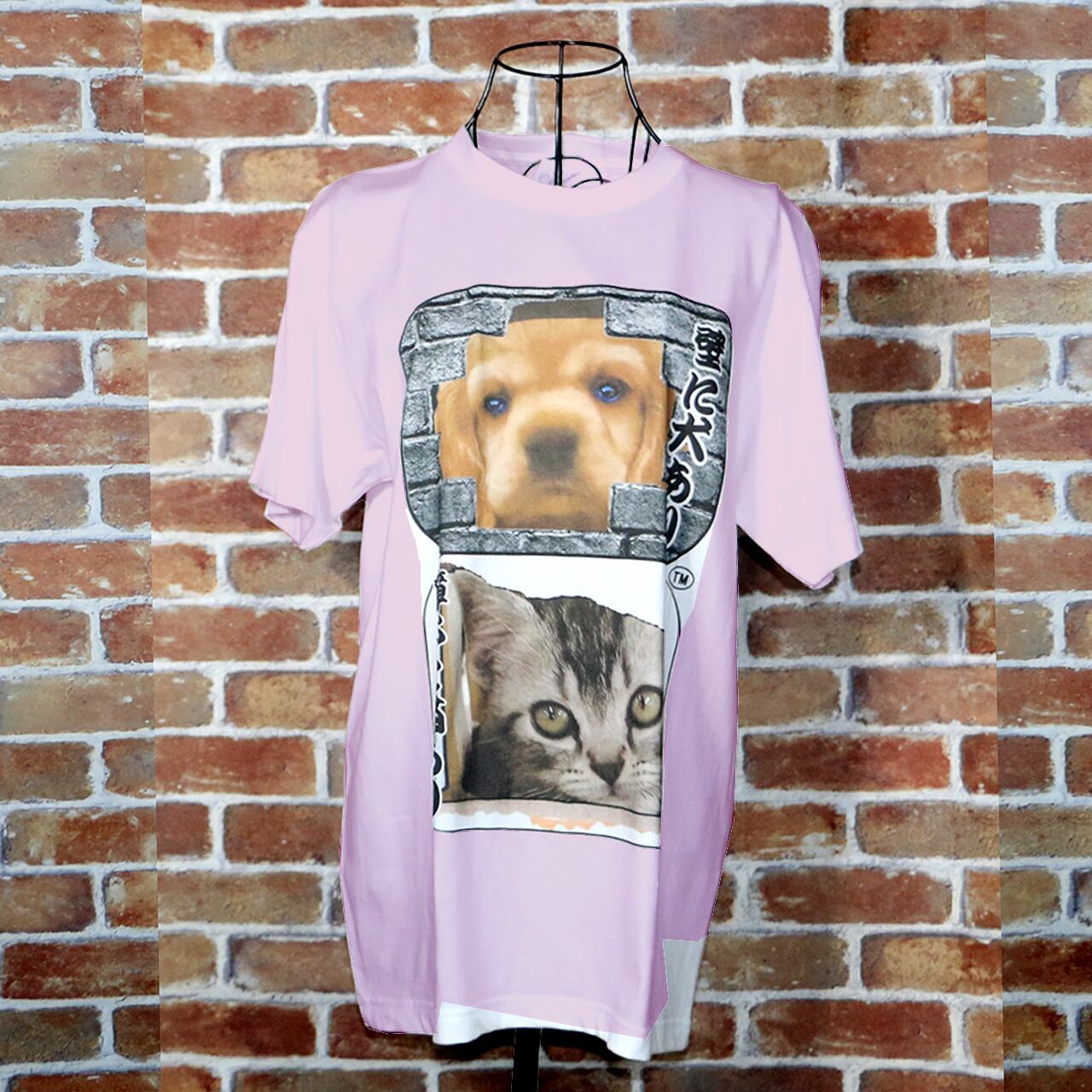 壁に犬あり障子に猫あり カラーデザイン ライトピンクTシャツ