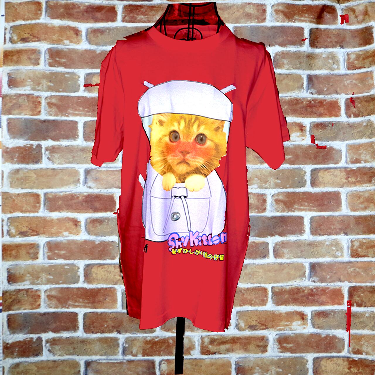シャイキッテン・チンチラ カラーデザイン 赤Tシャツ