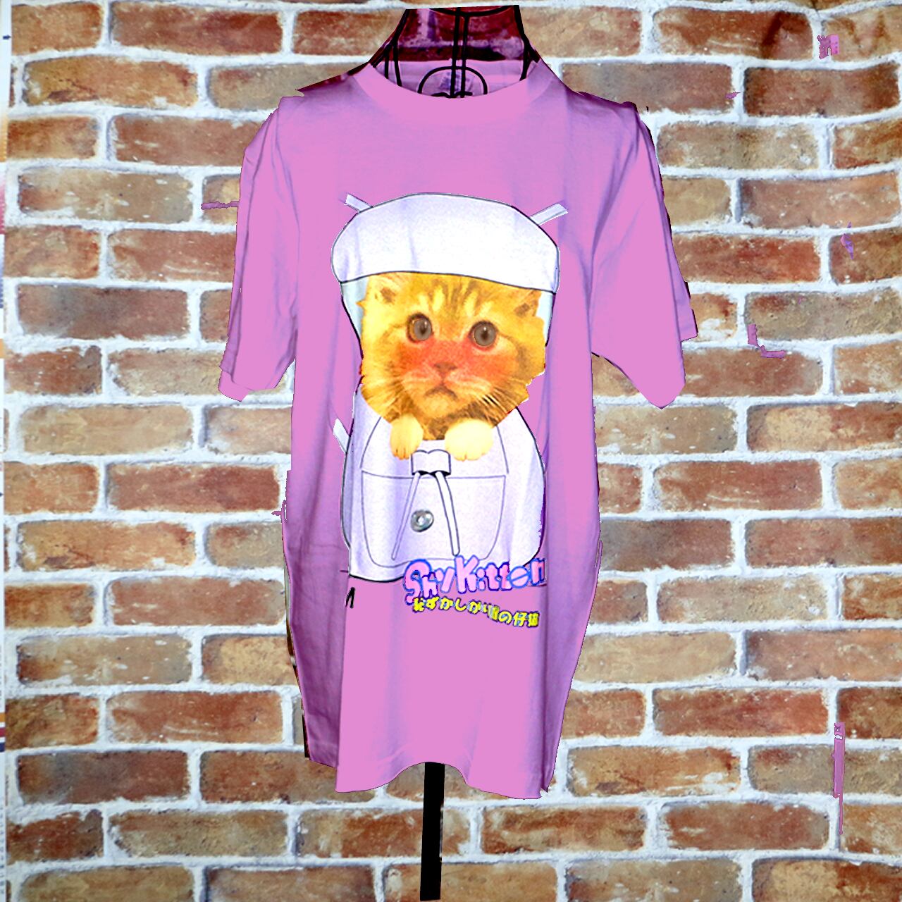 シャイキッテン・チンチラ カラーデザイン ピンクTシャツ