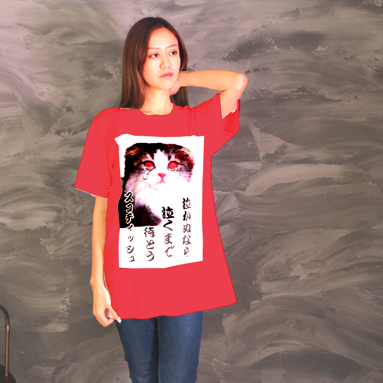 泣かぬなら泣くまで・スコティッシュ カラーデザイン 赤Tシャツ