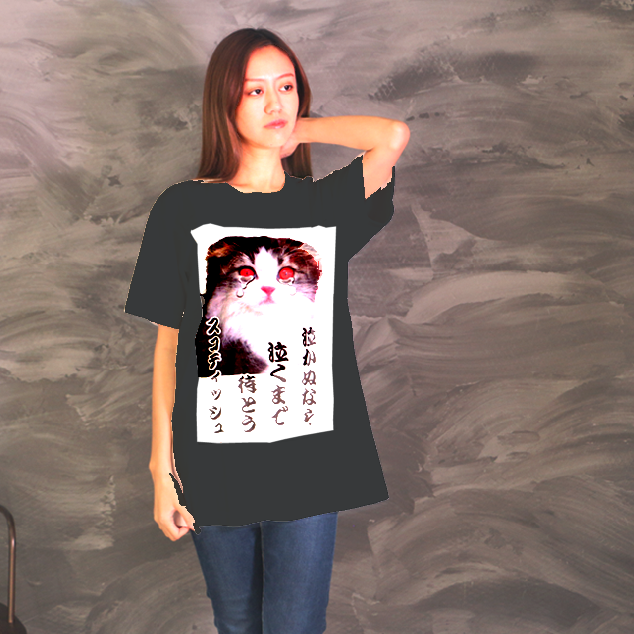 泣かぬなら泣くまで・スコティッシュ カラーデザイン 黒Tシャツ
