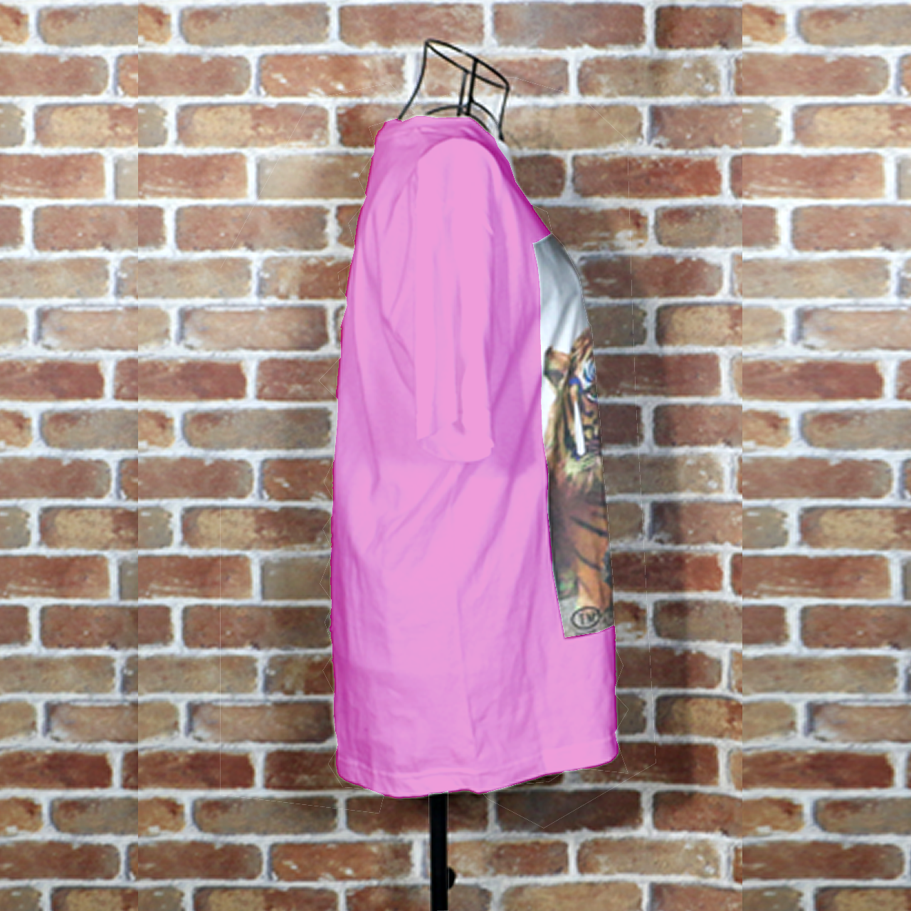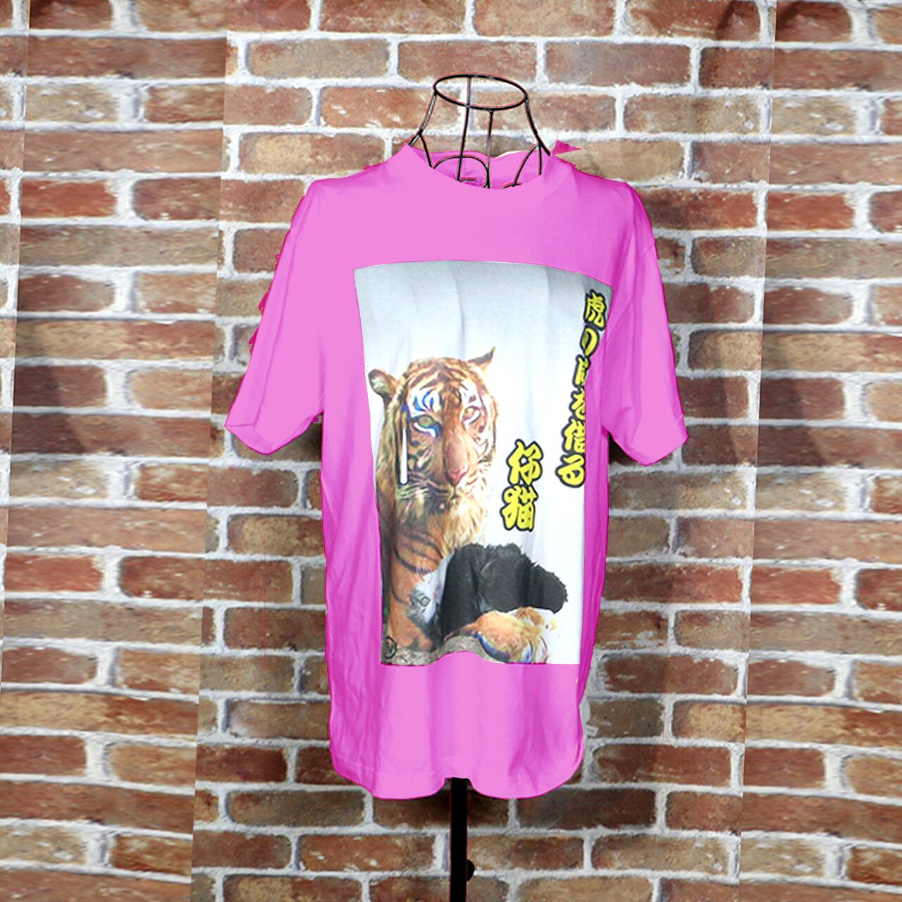 虎の威を借る仔猫 カラーデザイン ピンクTシャツ
