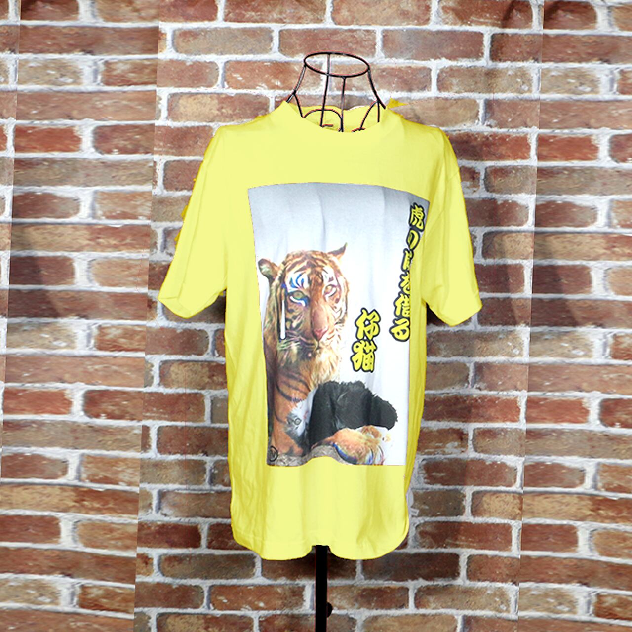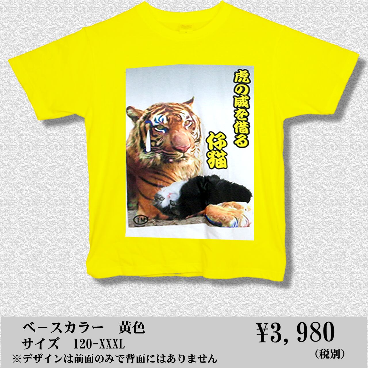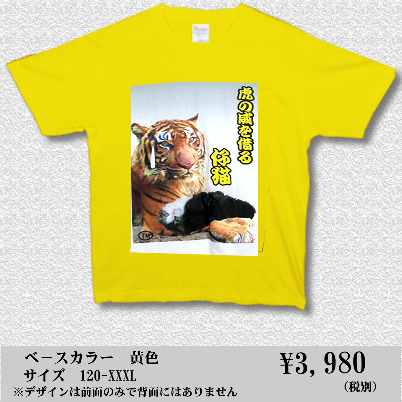 虎の威を借る仔猫 カラーデザイン 黄色Tシャツ