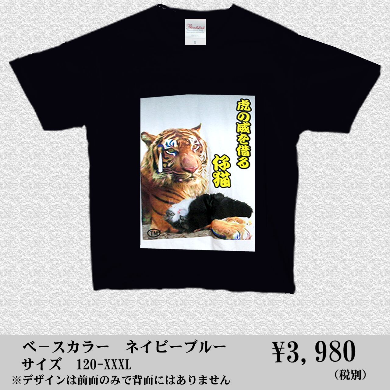 虎の威を借る仔猫 カラーデザイン ネイビーブルーTシャツ