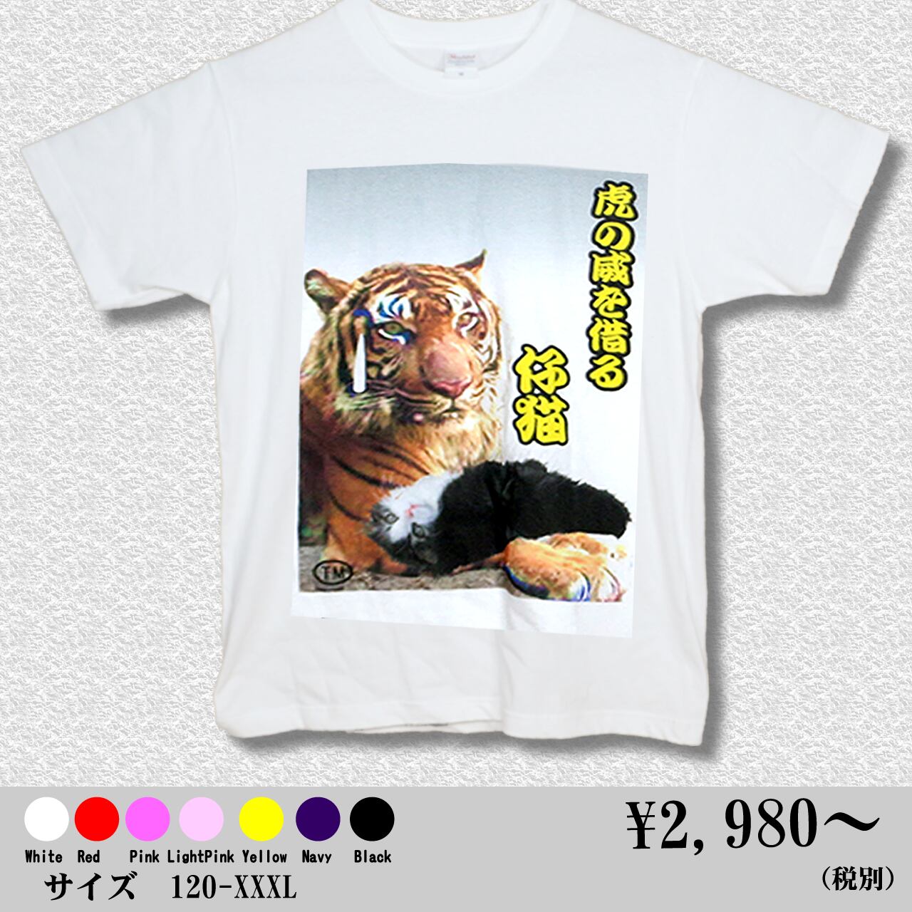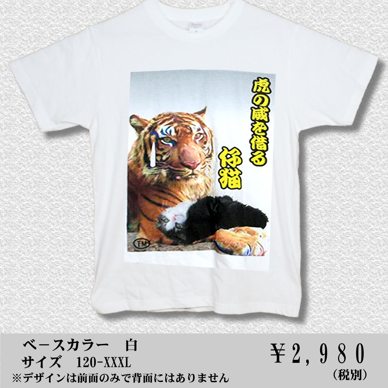 虎の威を借る仔猫 カラーデザイン 白Tシャツ