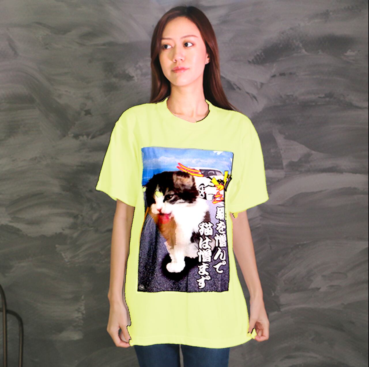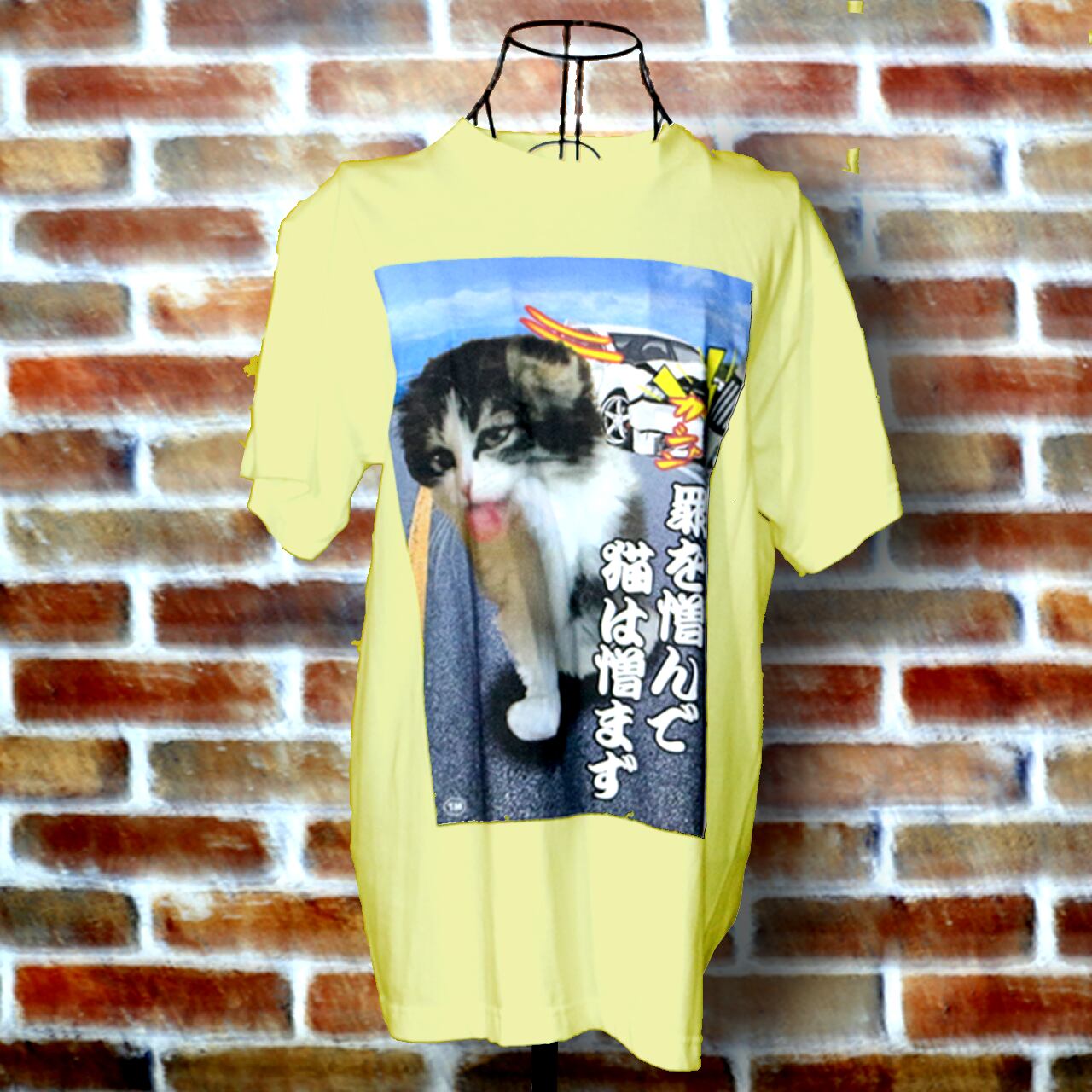 罪を憎んで猫を憎まず カラーデザイン 黄色Tシャツ
