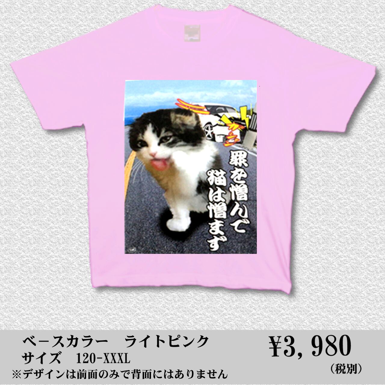 罪を憎んで猫を憎まず カラーデザイン ライトピンクTシャツ