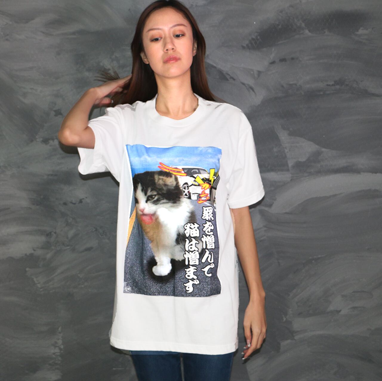 商品名:罪を憎んで猫を憎まず カラーデザイン 白Tシャツ