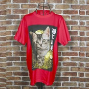猫に小判 カラーデザイン 赤Tシャツ