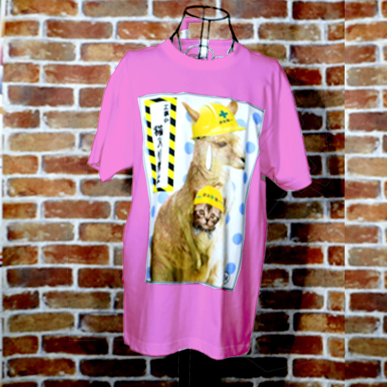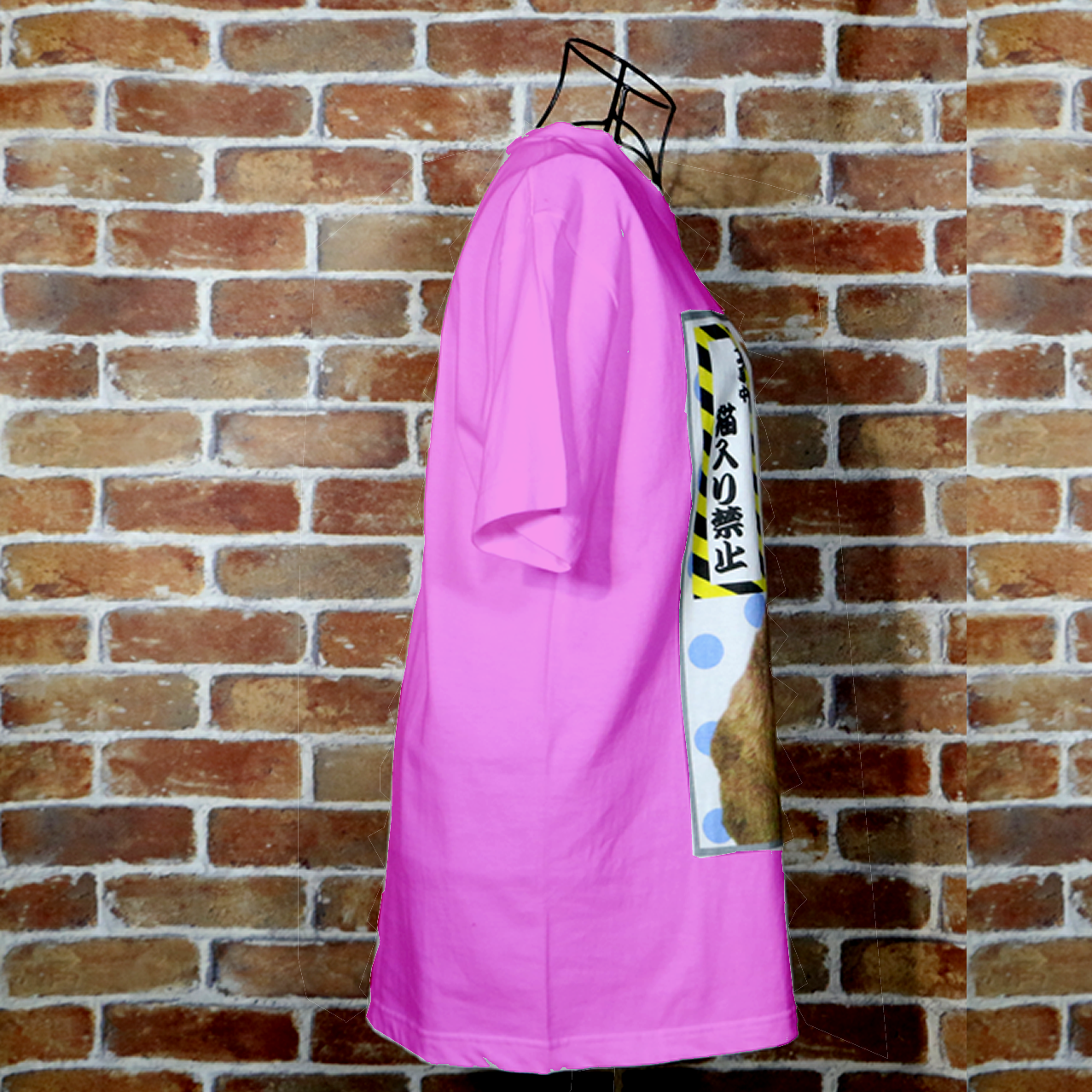猫入り禁止 カラーデザイン ピンクTシャツ