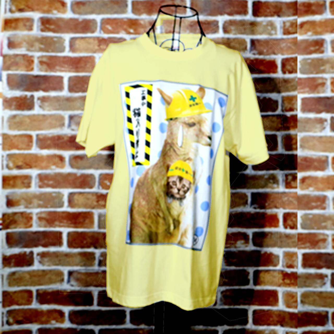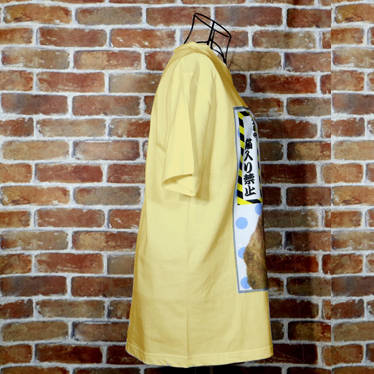 猫入り禁止 カラーデザイン 黄色Tシャツ