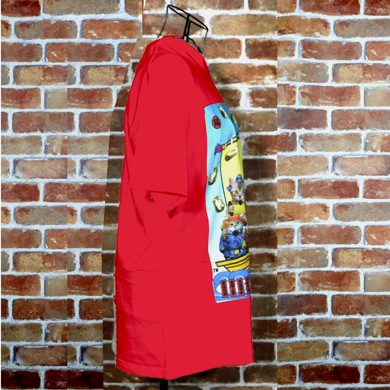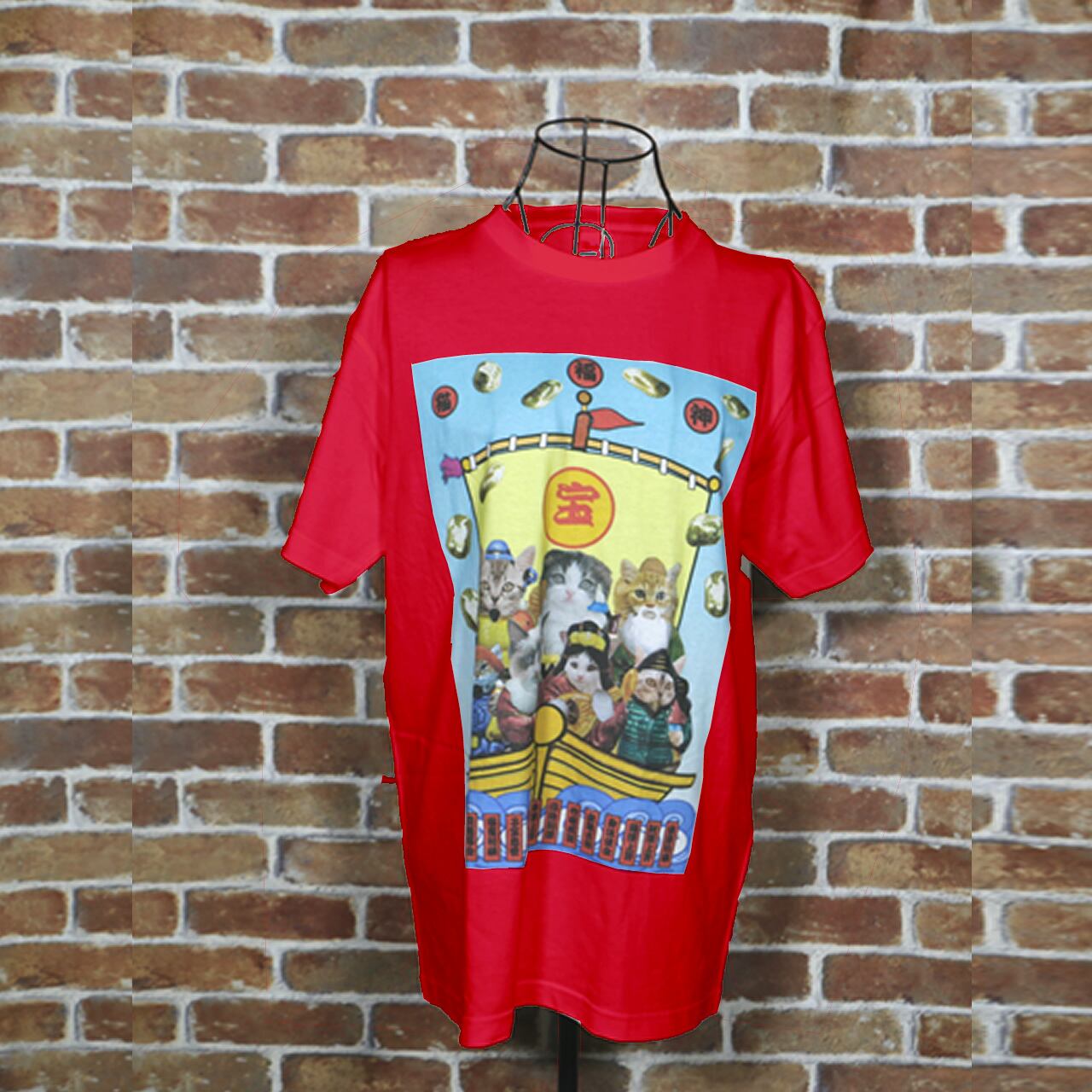 猫福神 カラーデザイン 赤Tシャツ