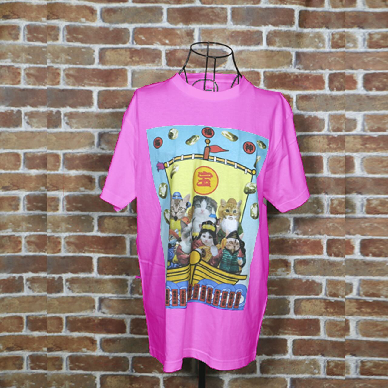 猫福神 カラーデザイン ピンクTシャツ