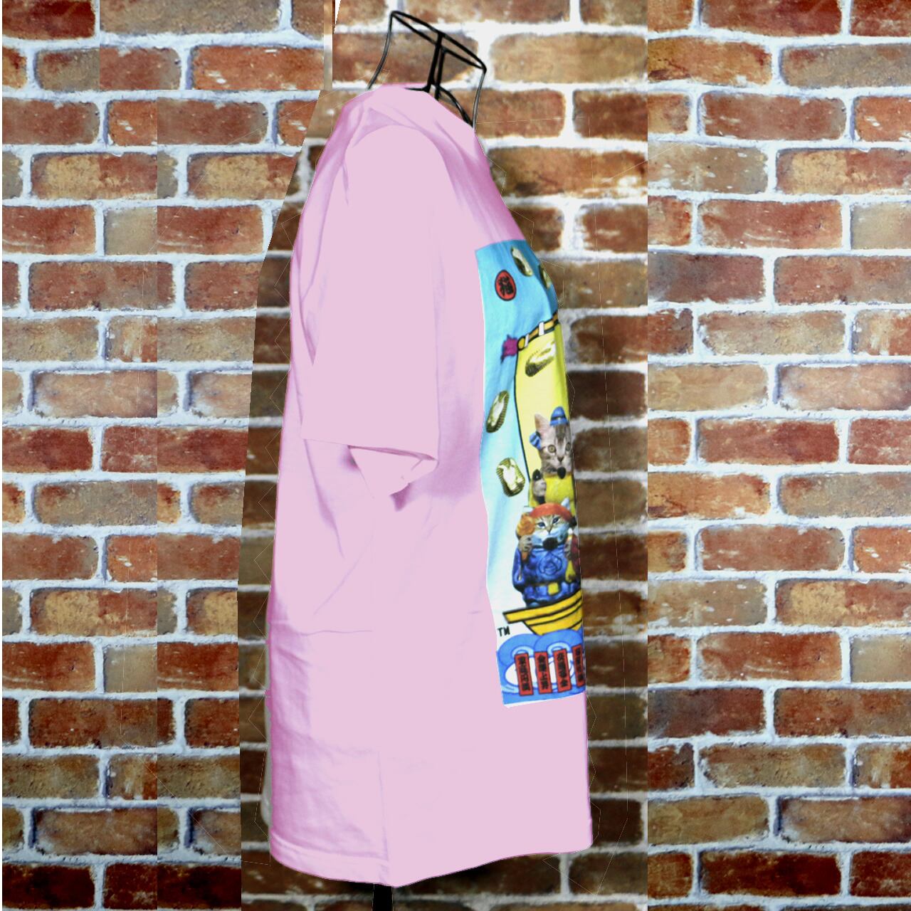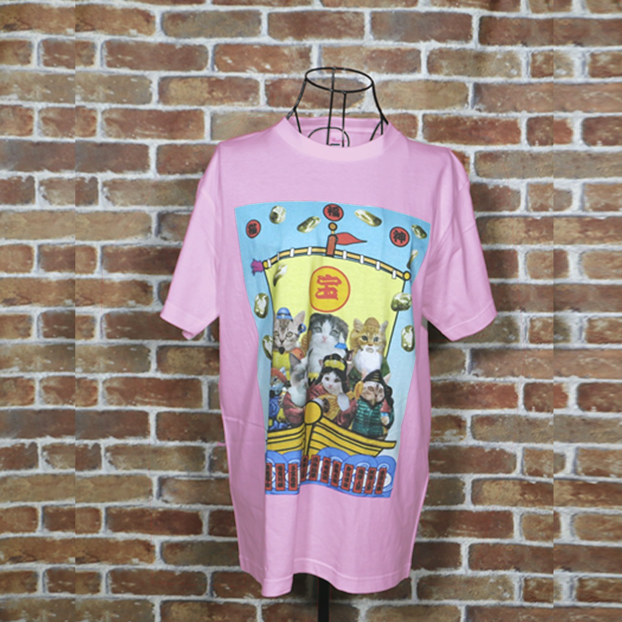 猫福神 カラーデザイン ライトピンクTシャツ