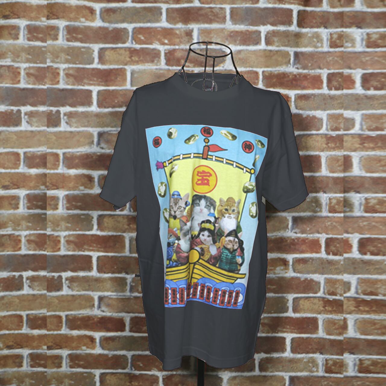 猫福神 カラーデザイン ネイビーブルーTシャツ