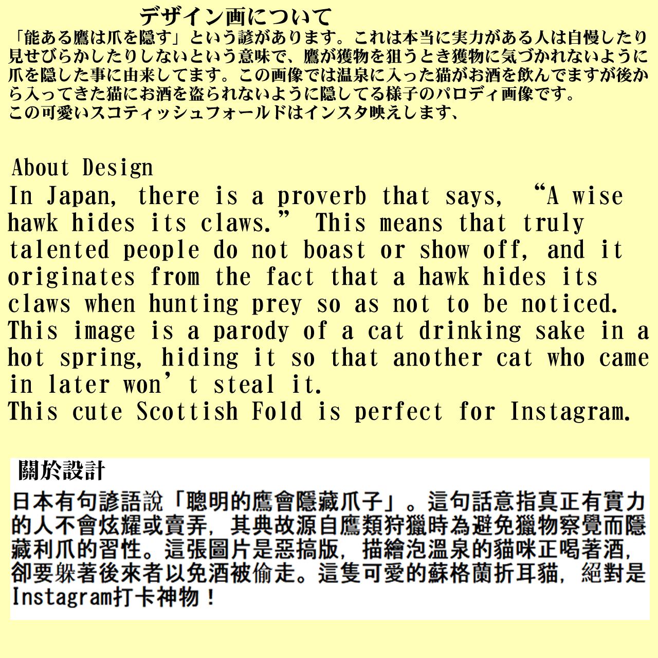 着心地や素材感に凝った定番のCVTへヴィウェイトTシャツ(男女兼用)に、魅力的なオリジナルデザインを施しました。「能ある猫は酒隠す」というユーモラスなテーマのもと、温泉に入ってお酒を楽しむ仔猫がしっかりとお酒を隠している様子が描かれています。この可愛らしいデザインが、あなたの日常に楽しいアクセントを添えてくれることでしょう。