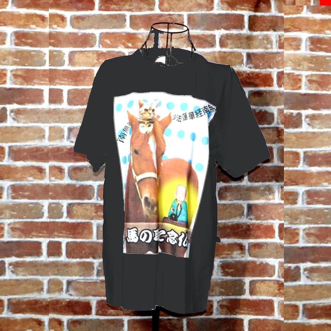 このTシャツのデザインには、言葉の意味をユニークに解釈したストーリーがあります。馬の持つ力強さやお坊さんの静けさ、仔猫の可愛らしさが融合したデザインは、着る人の個性を引き立ててくれるでしょう。