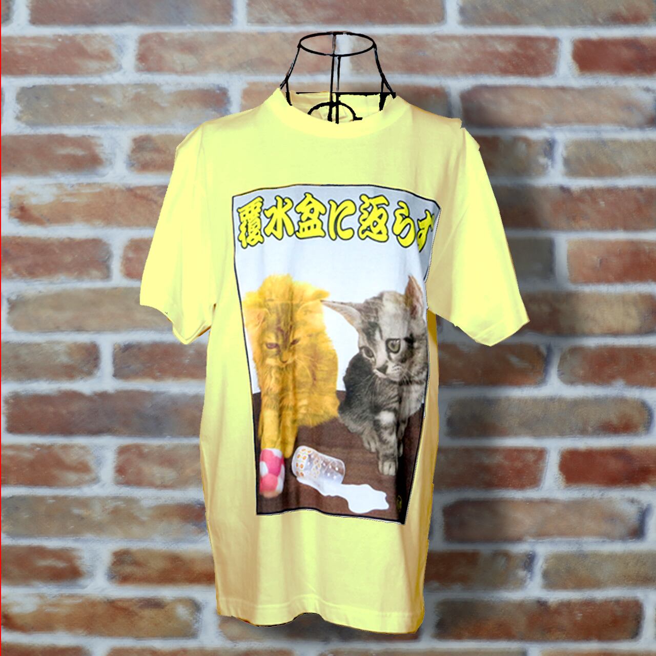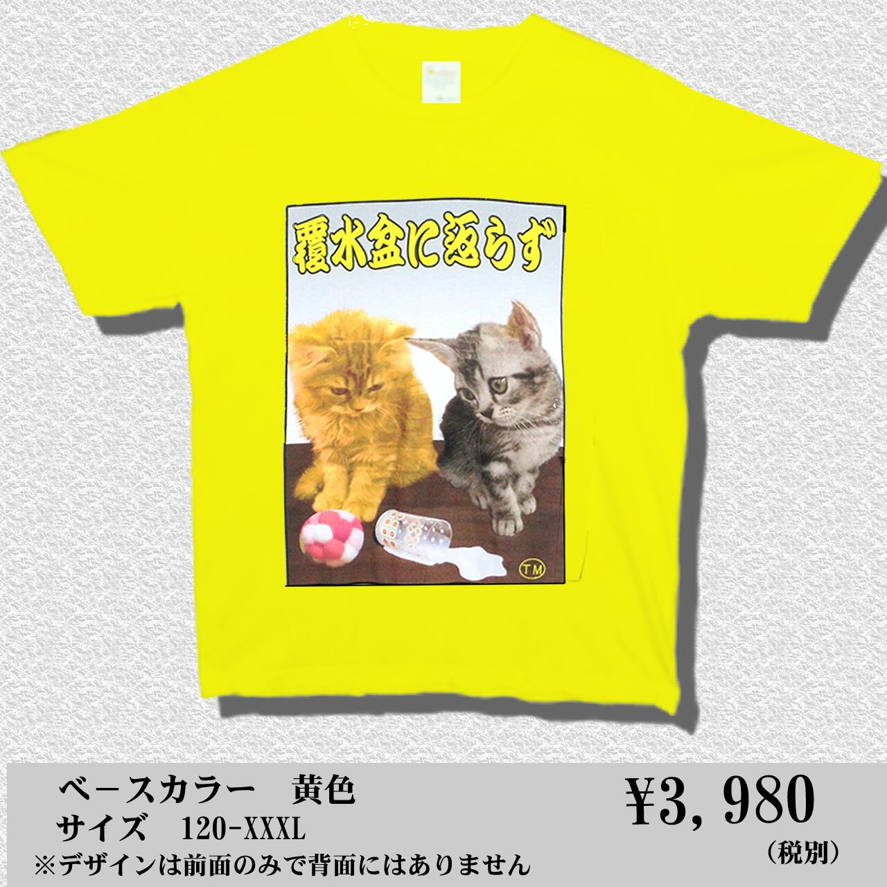 覆水盆に返らず カラーデザイン 黄色Tシャツ