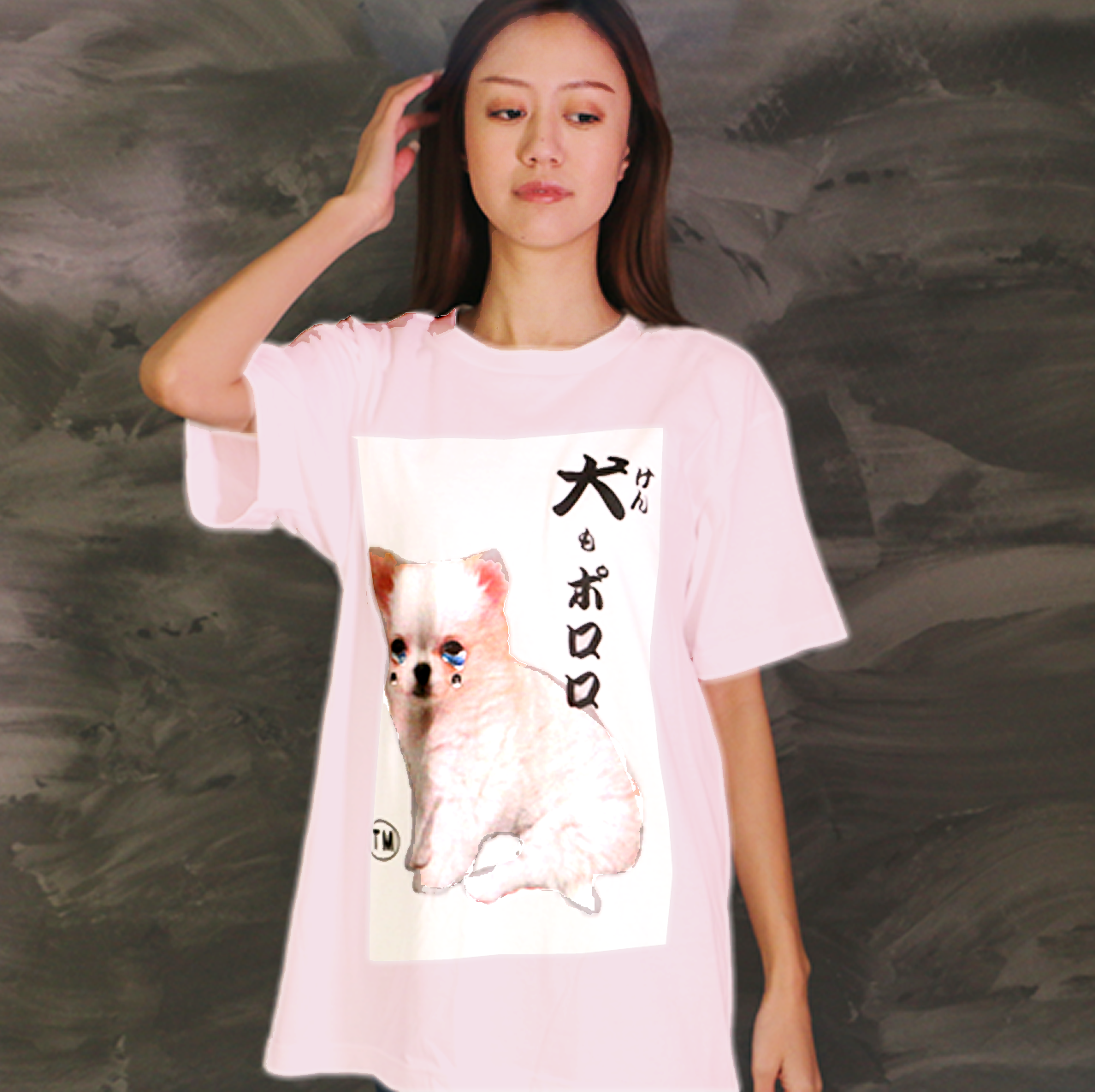 犬もポロロ カラーデザイン ライトピンクTシャツ