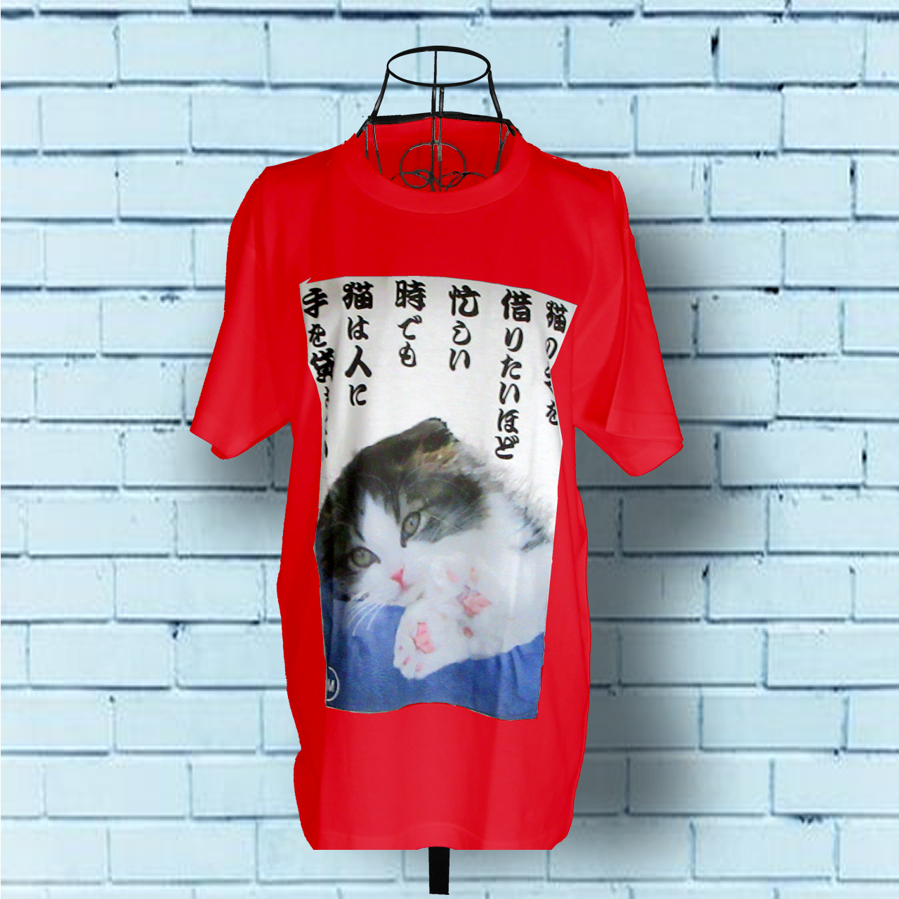 猫の手も借りたい カラーデザイン 赤Tシャツ