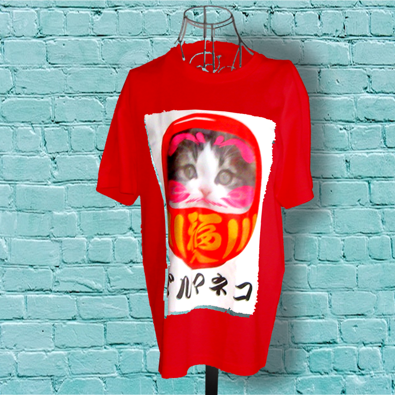 ダルマネコ カラーデザイン 赤Tシャツ