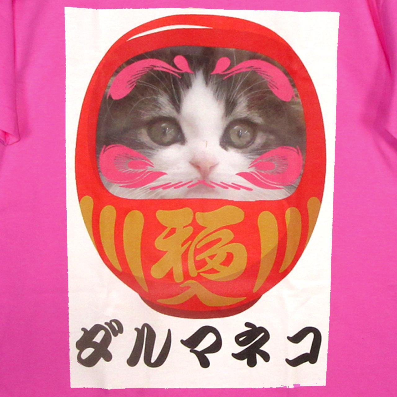 愛らしいスコティッシュフォールドの仔猫が達磨の顔になった「ダルマネコ」白Tシャツ。インスタ映え抜群の一枚で、あなたのファッションにユーモアと愛らしさをプラスしてくれます。