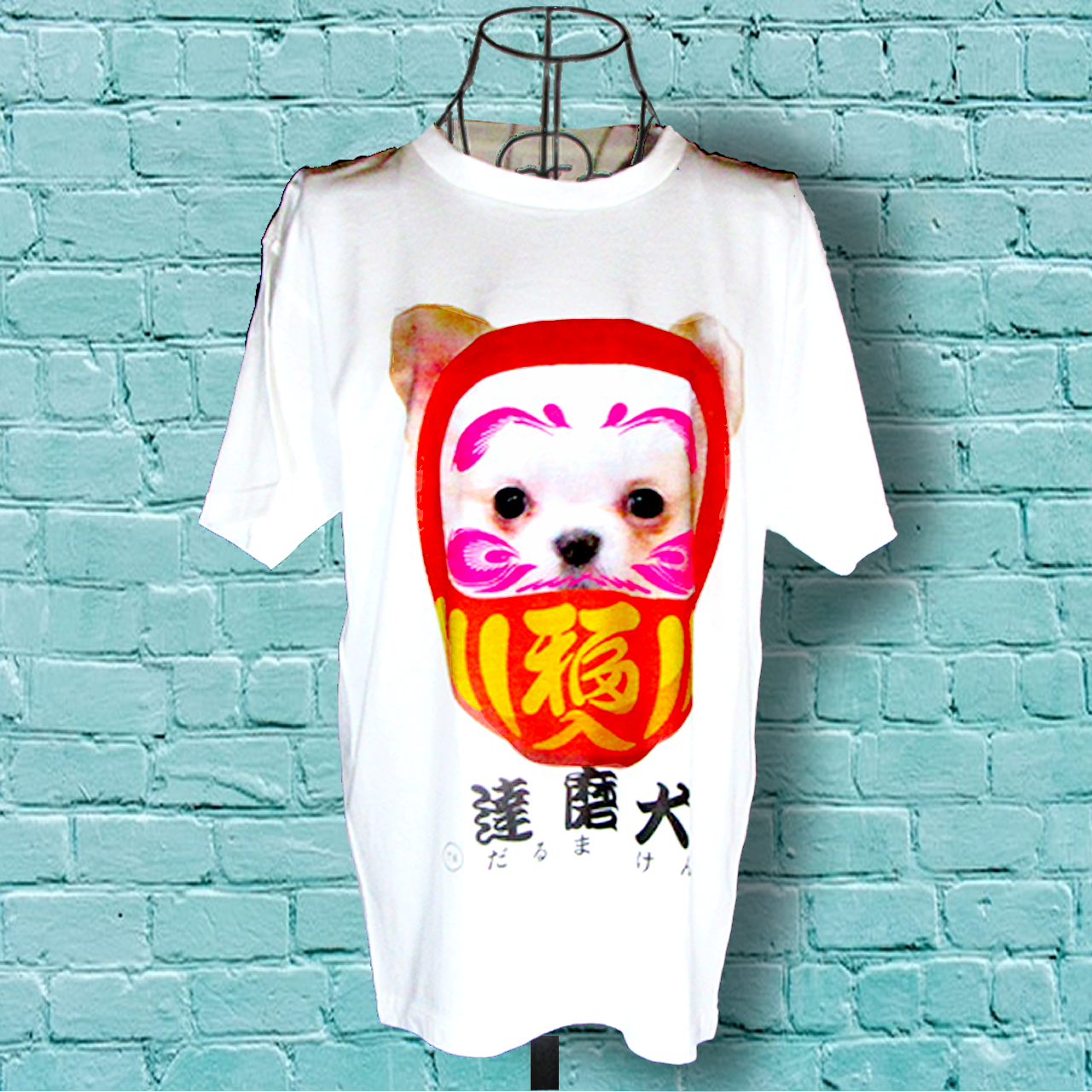 商品名:達磨犬 カラーデザイン 白Tシャツ