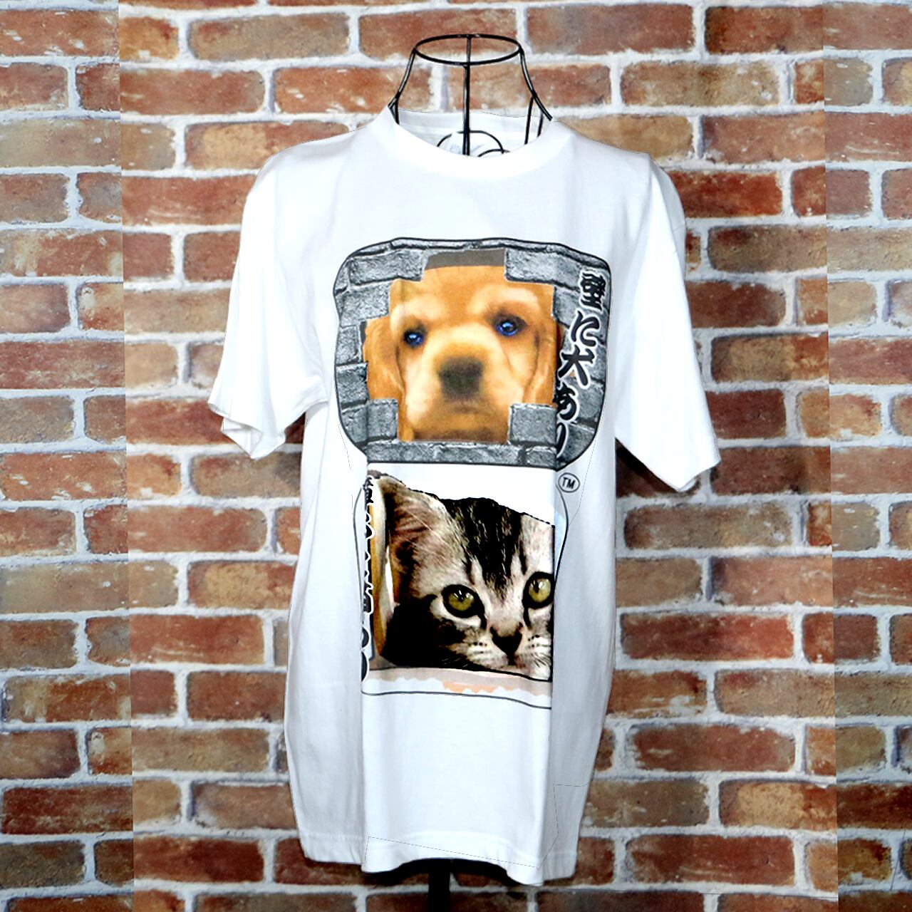 このカラーTシャツは、伝統的な日本の諺をパロディ化したデザインが特徴です。壁に犬、障子に猫という一見シンプルな構図が、実は心温まるストーリーを持っています。デザイナーのこだわりが感じられるこのTシャツは、個性を表現したい方にぴったりのアイテムです。